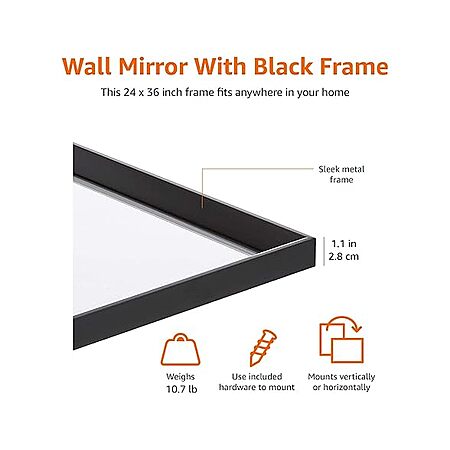 $24:Amazon Basics Rectangular Wall Mount Mirror 24" x 36", Peaked Trim, Black