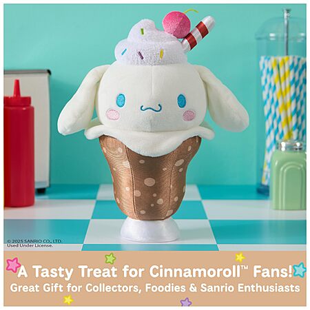 Model: GUND Sanrio Official Hello Kitty and Friends Cinnamoroll Root Beer Float Plush, Collectible Plush Toy, Stuffed Animal for Ages 1 and Up, Pink, 8”