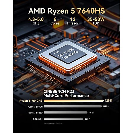 GMKtec M6 Ultra Gaming Mini PC Ryzen 7640HS (Upgraded 6600H/ 6800U), 32GB RAM DDR5 1TB SSD Dual NIC LAN 2.5GbE Desktop Computers Office Home, Triple 4K Display $389.98