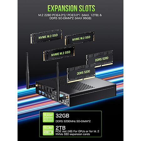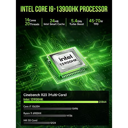 GMKtec Mini PC Intel Core i9 13900HK(Turbo 5.4GHz) 32GB DDR5 2TB SSD NVMe Mini Computers Workstation Quad 8K Display, 8XUSB Ports/COM/HDMI/DP 2.5G LAN WiFi6 & BT $579.99