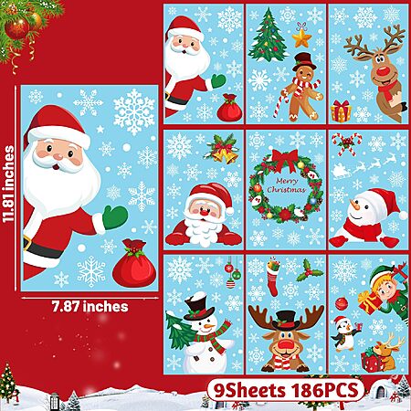 Traplace PVC Window Clings: 9-Sheet 186-Piece Christmas Theme $3.99, 9-Sheet 97-Piece Halloween Theme $4.99 + Free Shipping w/ Prime or on $35+