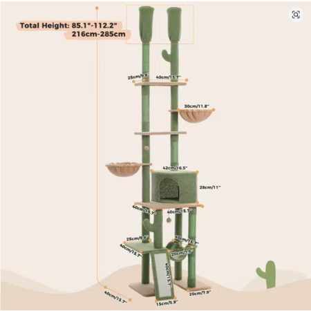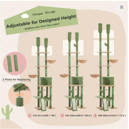 7-Tier 85.1" -112.2" Floor to Ceiling Cactus Cat Tree (Green AMT0221GN) on sale for $60.84 - an additional $10.00 =