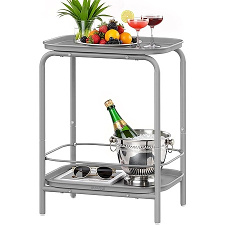 VASAGLE C-Shaped Side Table w/ Charging Station (Heather Greige)