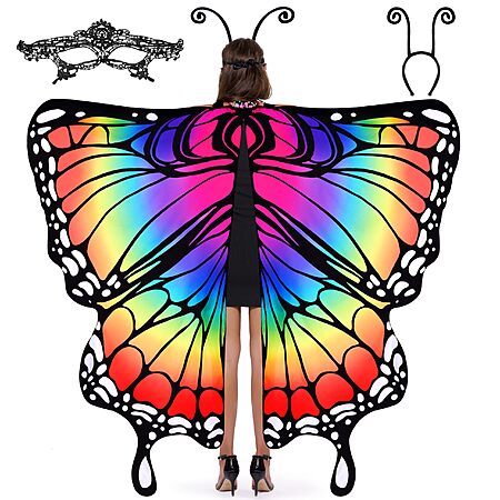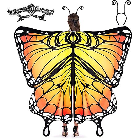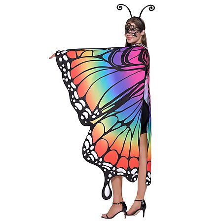 Model: Spooktacular Creations Adult Butterfly Costume, Wing Cape Shawl with Lace Mask and Black Velvet Antenna Headband, Halloween Costumes for Women Adult 2025