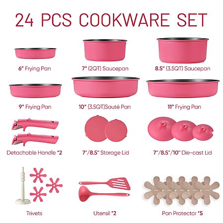 CaroteDirect via Amazon [amazon.com] has 24-Piece Carote Non-stick Pots and Pans Set (Pink) for $59.99. Shipping is free.