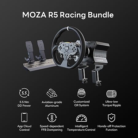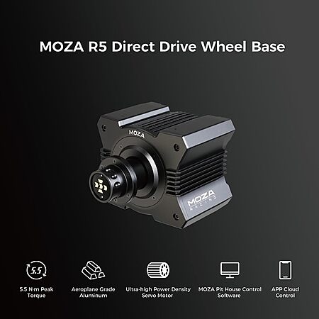 MOZA R5 All-in-One PC Gaming Racing Simulator: 5.5Nm Direct Drive Wheel Base, 11-inch Racing Wheel - $439.99