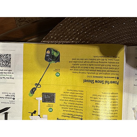 | Product Description: | The 80V Greenworks Snow Shovel offers the perfect solution to remove snow quickly off driveways, sidewalks, decks, and patios with a 12” clearing path and handles snowfalls up to 6-inches. This snow shovel features superior power that makes easy work and launches snow up to 20 feet in distance. The intelligent brushless motor provides a unique combination of steady power, lightweight durability, and convenient portability that lets the user take on the snow with confidence. Greater efficiency than other battery-operated tools allowing you to work non-stop for up to 45 minutes. Lightweight at only 18 pounds makes this the easiest and most convenient cordless solution to get snow out of your way. Harness the power of Gas without the hassle, maintenance, and fumes as you quickly and effectively clear snow from patios, decks, driveways, and sidewalks. Eliminate the need to bend or strain while you work in comfort thanks to the ergonomic design and the adjustable auxiliary handle. Quickly and effectively clear large amounts of snow comfortably and conveniently. The electric start gets you to work instantly, no more struggle with the hassles of Gas or breaking your back with an old snow shovel. Spend less time shoveling snow and more time enjoying staying warm. Over 10x quieter than gas snow blowers. This snow shovel is so quiet; you can start early in the morning and neighbors won’t notice. Less moving parts than gas makes switching over to the Greenworks snow shovel an easy decision. No more engine problems, bad gas, starting issues or headaches from fumes. Take advantage of the 75+ tools Greenworks has to offer. One 80 Volt battery powers over 75 tools. New Greenworks 80V 12" Cordless Brushless Snow Shovel: Up to 45 minutes of run-time with fully charged 80V 2.0 Ah battery Brushless motor for more torque, quiet operation, and longer life Hassle free push button start 20 ft. discharge Quickly clear your driveway, sidewalks, patios, etc. with a 12 in. clearing path and 6 in. clearing depth Ergonomic design eliminates back strain Includes one 80V 2.0 Ah battery and charger 4-year warranty What's Included: (1) 80V Cordless 12 in. Brushless Snow Shovel (1) 2.0 Ah Battery (1) Battery Charger (1) Owner's Manual |