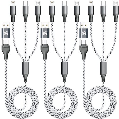 3-Pack 4' ShSiXin 6-in-1 Fast Charging Cable w/ Type-C/Micro/Lightning & USB A/C Port (GreyWhite) on sale for $9.99 - 50% off when you enter the coupon code