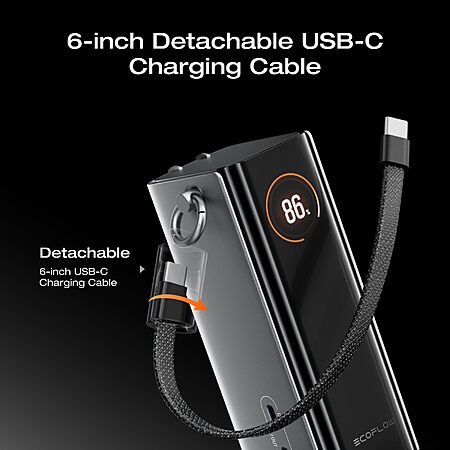 EcoFlow Rapid Pro 3-in-1 Power Bank, 10,000mAh Battery Pack with 67W Foldable AC Plug, Detachable USB-C Cable, 45W Fast Recharging $66.5