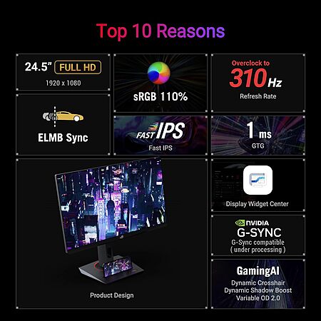 24.5" ASUS ROG Strix Full-HD 310Hz 1ms IPS USB-C HDR400 Gaming Monitor (XG259CMS) $179