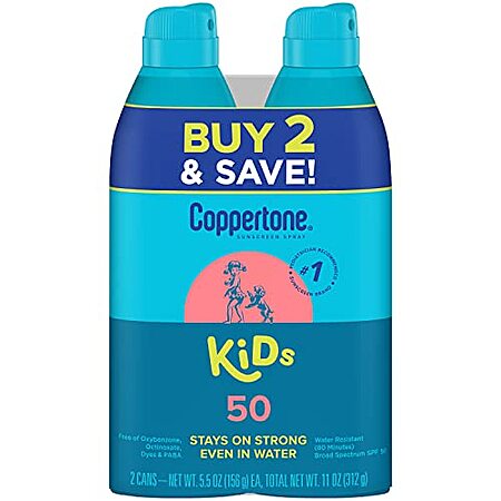Amazon[amazon.com] has 2-Pack 5.5-oz Coppertone Kids Sunscreen Spray (SPF 50) for $5 - 5% when you check out via Subscribe & Save = $4.75. Shipping is free with Prime or on $35+ orders.