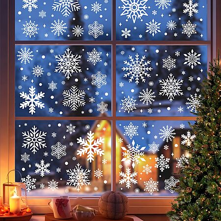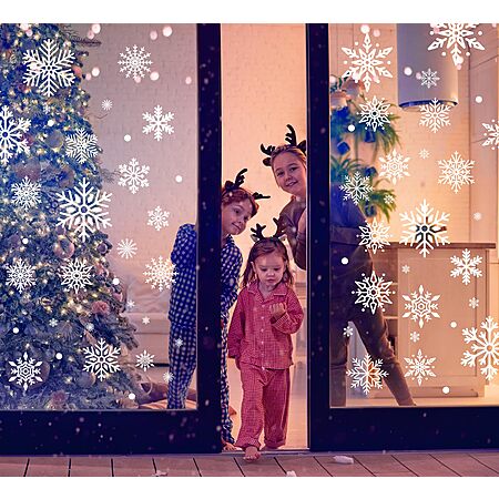 - Christmas window clings - Christmas snowflake window stickers,suitable for any smooth surface: glass windows,ceramic tiles,sliding glass doors,shop windows etc. Great as Xmas Christmas decals, static snowflake stickers, snowflake decal decorations, can make amazing Christmas party supplies, Christmas decorations , festive home décor;
