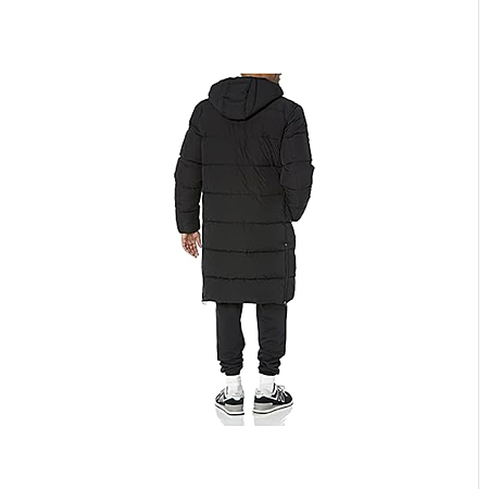 COLD-WEATHER STYLING: Stay warm in this versatile water-resistant long puffer featuring a 2-way front zipper and zippered side vents.