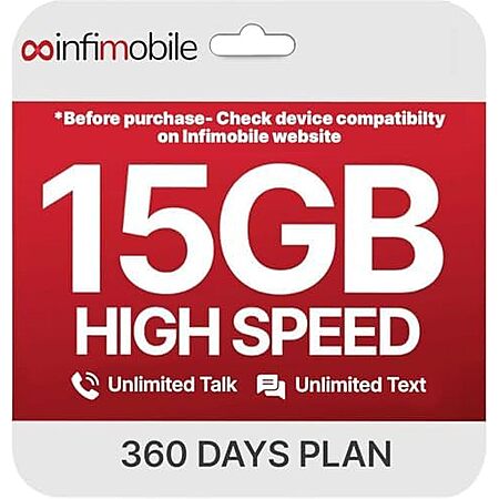 [Prime] $112*: 12-Month Infimobile Prepaid Mobile Unlimited Talk / Text + 15GB Data / Mo. at Amazon