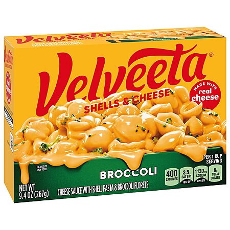 Velveeta Shells & Cheese Broccoli with Shell Pasta, Cheese Sauce & Broccoli Florets, 9.4 oz Box~$0.99 After Coupon & S&S @ Amazon