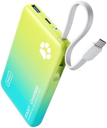 Model: INIU PawGo Portable Charger, 45W PD 10000mAh Fast Charging Slim Power Bank, Built-in USB C Cable Battery Pack, Travel Essentials Powerbank for iPhone 16/15 Pro Max, Samsung S25/S24 etc, Tropic Punch