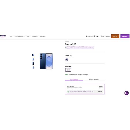 ONLINE EXCLUSIVE DEAL: Samsung Galaxy S25 128GB Navy for $249.99 with port in or $349.99 with new number.