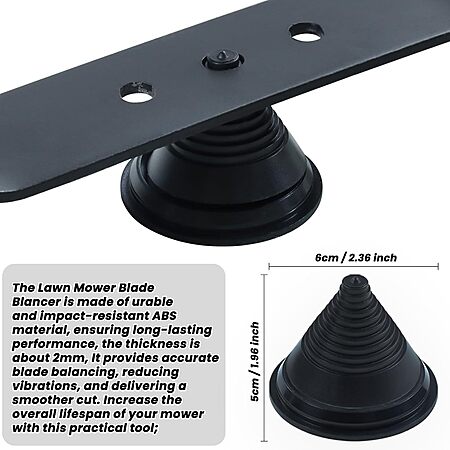 • BLADE BALANCED: The Lawn Mower Blade Blancer is made of durable and resistant ABS material, ensuring long-lasting performance, the thickness is about 2mm, This tool helps balance your lawnmower blades after you sharpen them, which means less vibration and less strain on the engine. It also checks for blades that are out of balance or bent.