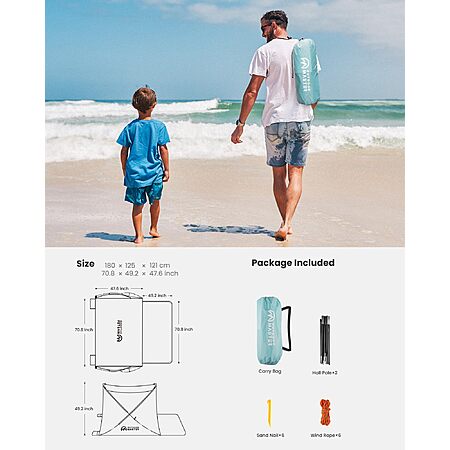 OutdoorMaster 3-4 Person Portable Beach Tent w/ UPF 50+ (71" x 49.2" x 47.6") $17.54 + Free Shipping w/ Prime or on $35+