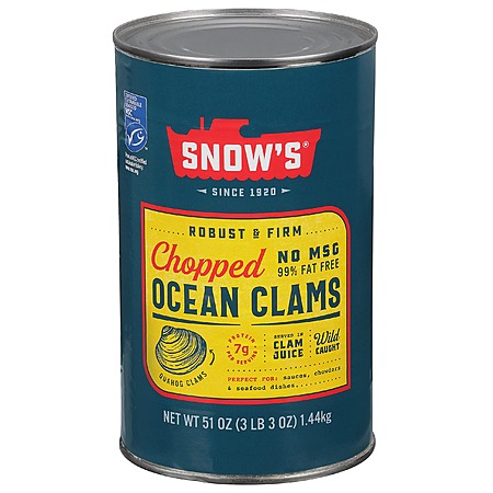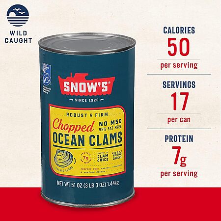 Snow's Ocean Chopped Clams Canned, 51 oz Can - 7g Protein per Serving - Gluten Free, No MSG, 99% Fat Free~$8.87 After Coupon & S&S @ Amazon