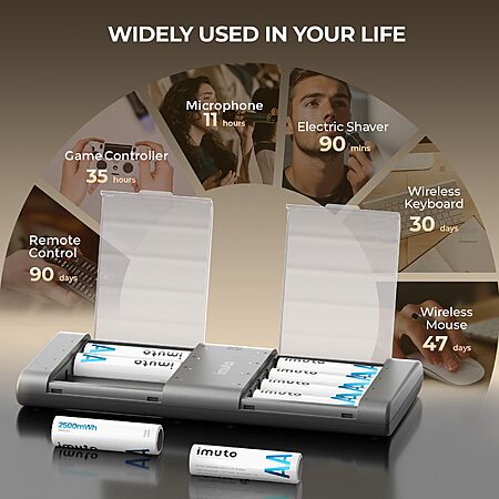 imuto Lithium Batteries AA 8 Pack with Charger, 2500 mWh 1.5V Constant Voltage Output $10.44 w FS & SS