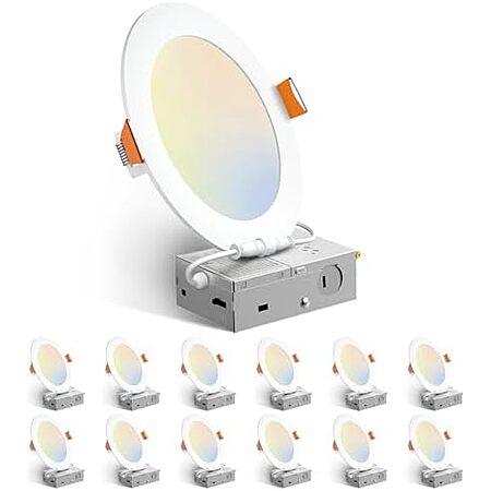 $56.68*: 12-Pack Amico 6" Ultra-Thin LED Recessed Ceiling Light w/ Junction Box at Amazon