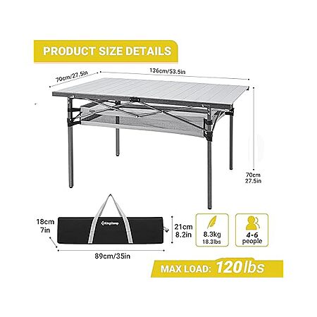 53.5" × 27.5" KingCamp Aluminum Folding Camping Table w/ Bag $59.99 + Free Shipping w/ Prime