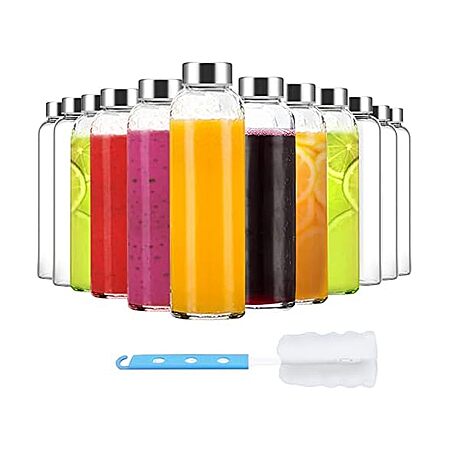 12-Pack 18-Oz Luxfuel Glass Juice Bottles w/ Lids and Cleaning Brush $19.99 + Free Shipping w/ Prime