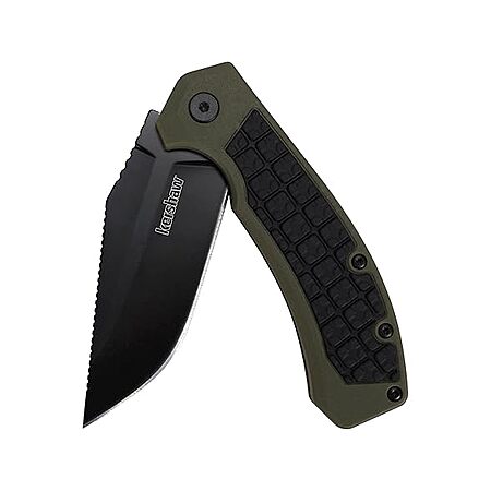 $19.99: Kershaw Faultine 3" Pocket Knife, 8Cr13MoV Blade, Black Oxide Finish, Olive Handle with Rubber Grip & Pocket Clip