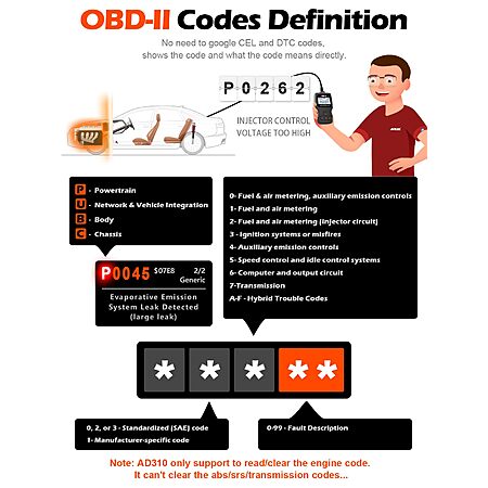 ANCEL AD310 Classic Enhanced Universal OBD II Scanner Car Engine Fault Code Reader CAN Diagnostic Scan Tool, Read and Clear Error Codes for 1996 or Newer $23.99