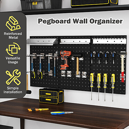 Costway 3 Panel Wall-Mounted Pegboard with Kit $41 + Free Shipping