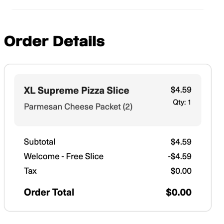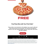 online ordering [pilotflyingj.com] with a free pizza slice for first-time users. YMMV as not all locations have online ordering set up yet. If yours does, you should see the offer after you add the slice to your bag and go to checkout. You need to have/create an account and sign in to see the offer. No purchase required, so it's completely free.