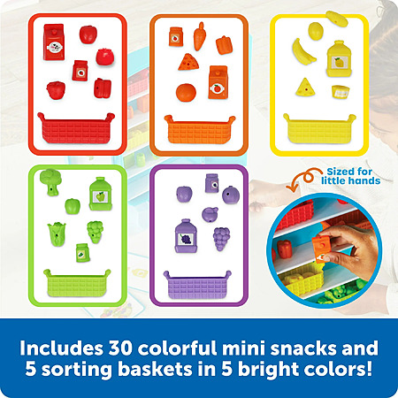 Sized perfectly for little hands, the mini food pieces and sorting baskets help children build coordination and dexterity as they organize items by color, size, or type.