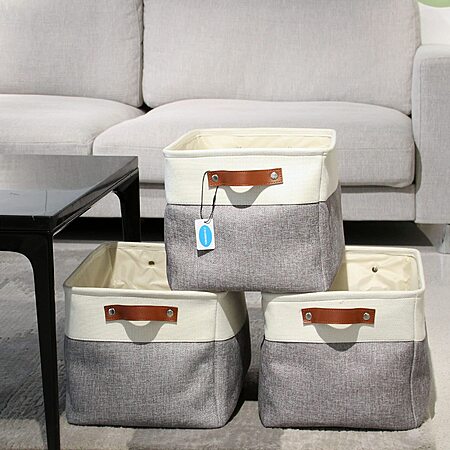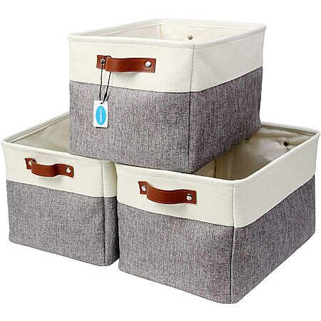 3-Pack Casaphoria Collapsible Cube Fabric Storage Baskets with Handles (White/Gray) $9.48 ($3.16/ea) + Free Shipping w/ Prime or on $35+