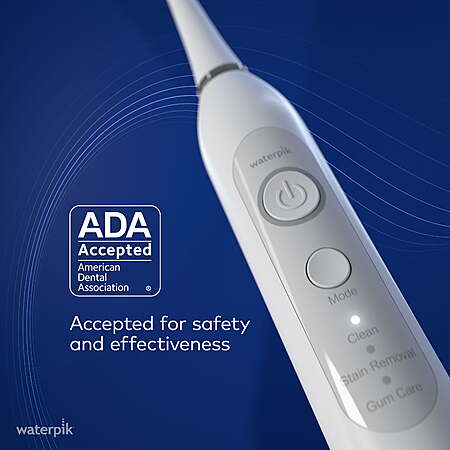 | Product Description: | Experience a deeper clean that you can see and feel with the new Waterpik Sensonic™ rechargeable electric toothbrush. It is clinically shown to remove up to 4X more plaque bacteria than manual brushing in hard-to-reach areas and helps protect against gingivitis, cavities, and bad breath.* With advanced features and an intuitive design, this innovative electric toothbrush provides thorough cleaning while being easy and comfortable to use. At the touch of a button, choose from three different brushing modes to personalize your experience: Clean, Stain Removal, and Gum Care. The Clean mode offers everyday cleaning performance, while the Stain Removal mode targets surface stains. The Gum Care mode gently enhances gum stimulation for a healthier smile. The advanced Sensonic brush head features contoured bristles that hug the natural shape of your teeth, making it easier to clean hard-to-reach areas, even back teeth. Combined with advanced sonic technology, Waterpik Sensonic removes plaque bacteria with minimal effort. Waterpik brand products are tested and trusted. For 60 years, Waterpik has been designing and engineering clinically proven products that deliver superior oral care. Waterpik Sensonic is accepted by the American Dental Association (ADA) for safety and effectiveness. Rechargeable lithium-ion battery lasts up to 4 weeks per charge, 2-minute timer with 30-second pacer, recharge indicator, 3 modes, ADA-compliant soft bristles, ultra-quiet technology, ergonomic handle with non-slip finish. Clinically shown to remove up to 4X more plaque bacteria than manual brushing in hard-to-reach areas and helps protect against gingivitis, cavities, and bad breath. Accepted by the American Dental Association. Sensonic Sonic Electric Toothbrush, White STW-03 3 modes to personalize brushing at the touch of a button: Clean- for everyday performance; Stain Removal- for removing surface stains; and Gum Care- for gently enhancing gum stimulation. Waterpik Sensonic electric toothbrush, 1 Waterpik Sensonic Contour Brush Head, premium travel case, USB-C to USB-A cable (wall adapter not included), charging base, 2-year limited manufacturer’s warranty, see manual for details. Cleans hard-to-reach areas, even back teeth, with a specially designed bristle pattern that hugs tooth surfaces to provide a deeper clean. To let you know when to replace, green reminder bristles fade to yellow. Use genuine Waterpik Sensonic Contour Brush Heads, model STWB-3WW-B USB-C to USB-A charging cable (rated 5.0V DC, 1.0A), charges from laptop, power bank, or wall adapter (not included) Two-year limited warranty, visit waterpik.com/warranty or call 1-800-525-2774 for additional information |