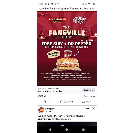 Firehouse Fansville free sub and drink with medium sub purchase Saturdays 2025