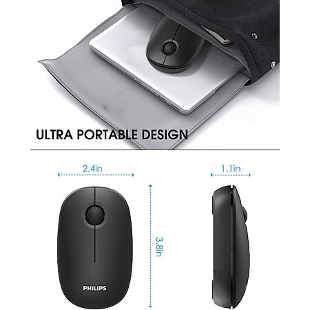 $6.80: PHILIPS Wireless Mouse, 2.4GHz Quiet Mouse with USB Receiver at Amazon