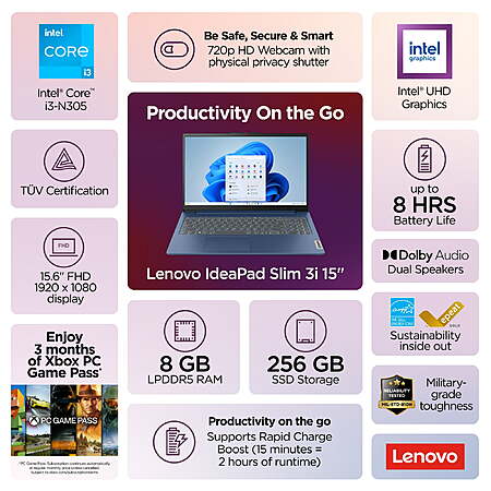 - Powerful Processor: Equipped with Intel Core i3-N305 for efficient multitasking.