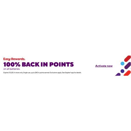 At Staples : Get 100% back in rewards on ALL Batteries up to a max of $40 - from 10/26, Single use, Must activate offer ends 11/01/25