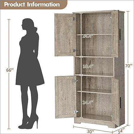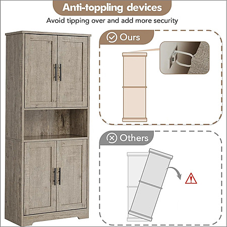 70" Ebern Designs Tall Kitchen Pantry Cabinet w/ 4 Doors, Adjustable Shelves, Open Shelf & Freestanding Cupboard (Gray) $136.99 or Less + Free Shipping