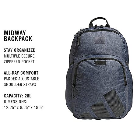 $12.99:adidas Midway Small Backpack for Women and Men, Durable Laptop Bag, One Size(Twill White/Black)