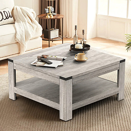 31.5" Millwood Pines Zara Square Coffee Table with Storage Shelf (Wash Gray) $79.99 + Free Shipping