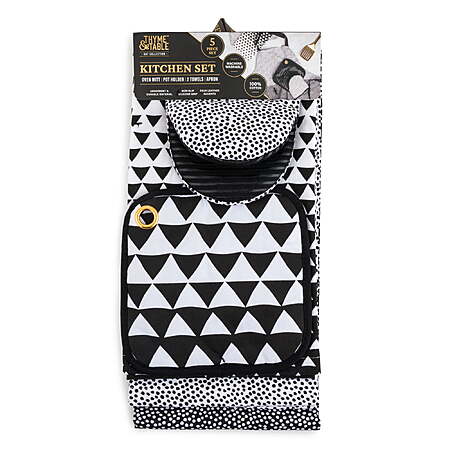 Walmart [walmart.com] has 5-Piece Thyme & Table Textile Kitchen Set: Apron, Oven Mitt, Pot Holder & Two Towels (Tie Dye Black) for $7. Shipping is free w/ Walmart+ (free trial available [walmart.com]) or on orders $35+.