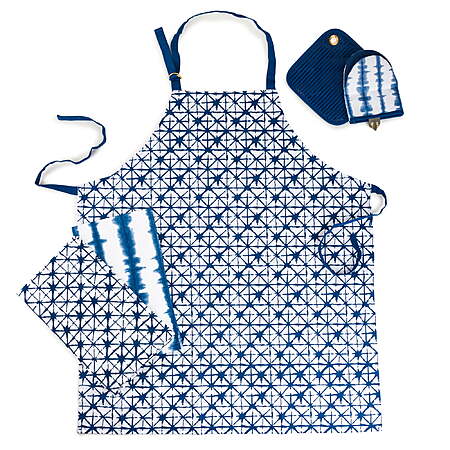 5-Piece Thyme & Table Textile Kitchen Set: Apron, Oven Mitt, Pot Holder & Two Towels: Tie Dye Black $7 or Blue $6.50 + Free S&H w/ Walmart+ or on $35+