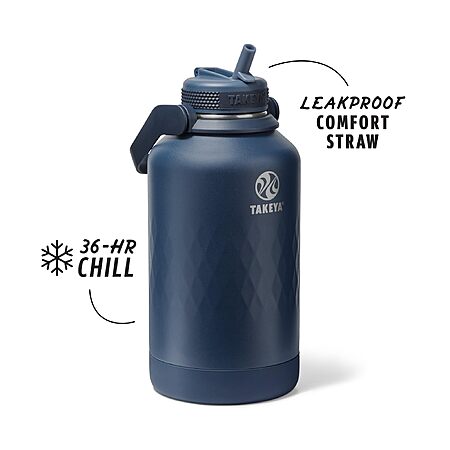 $29.57: Takeya Sport 64 oz Triple-Insulated Stainless Steel Water Bottle, Straw Lid – Leakproof, Sweatproof, BPA-Free, Keeps Drinks Cold 36 Hrs, Hot 14 Hrs – Indigo at Amazon