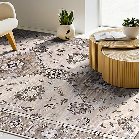 5' x 7' Charlton Home Non-Slip Machine Washable Oriental Area Rug: Brown/Beige $29.99, White/Gray $32.99 + Free Shipping