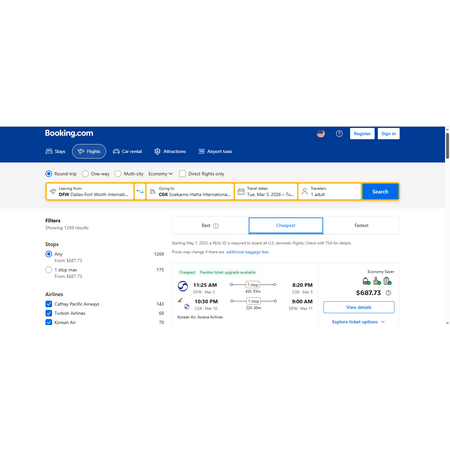 Korean Air/Asiana Airlines via Booking.com have round trip airfares travelling from Dallas (DFW) to Jakarta Indonesia (CGK) for $688, making 1 stop in Seoul Korea for up to 23 hours both ways so definitely plan ahead. These economy saver airfares allow a personal item, a carry-on bag and 1 free checked bag.