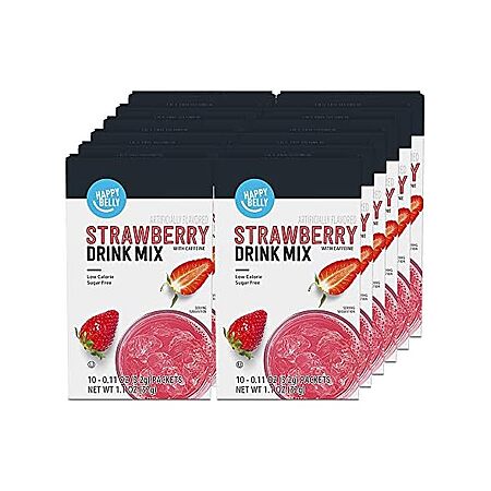Amazon Brand - Happy Belly Drink Mix Singles, Strawberry with Caffeine, 120 Count (12 Packs of 10) (Previously Solimo), $9.99, FS for Prime, Woot!