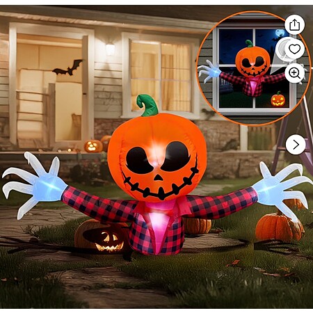 BeePrincess 5 FT Halloween Inflatable Pumpkin Ghost – Outdoor LED Blow-Up Decoration with Giant Arms, Light-Up Eyes, Waterproof Yard Decor for Lawn and Garden $15.99