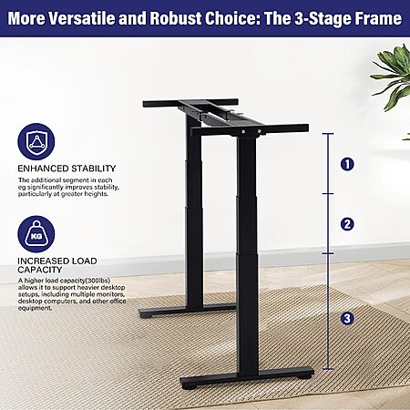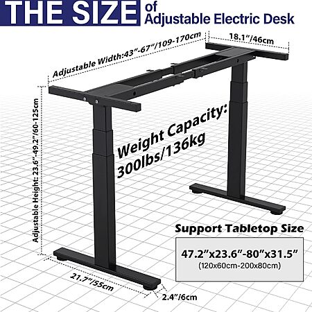 TOPSKY Dual Motor 3 Stage Electric Adjustable Standing Desk Frame for up to 80”x31.5” Table Tops Heavy Duty 300lb Load Capacity for Home Office (Black Frame Only) $228.6